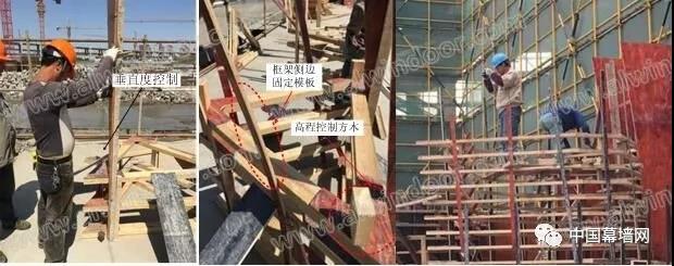利用BIM技術針對設計的空間定位坐標進行三維建模,通過BIM模型提取不同標高位置處的橫截面,根據橫截面與標高制作相應模板支模。